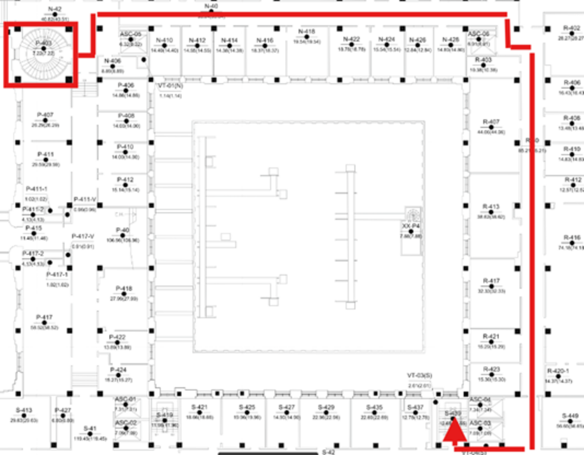 - DÉTOUR: Prendre l’escalier hélicoïdal P3 jusqu'au niveau 4, puis l’escalier S-39 pour redescendre au niveau 3.